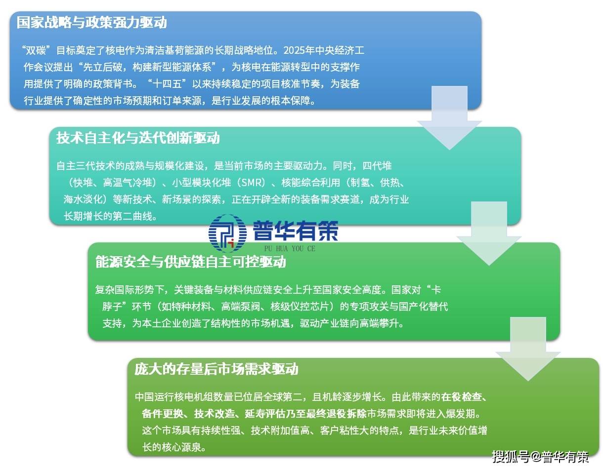 北京普华有策信息咨询有限公司《核电装备全产业链“十五五”战略机遇深度报告》立足于全球能源转型与我国“双碳”战略背景,对核电装备行业进行了全景式深度剖析。报告系统梳理了行业从技术引进到自主创新的发展历程,并以官方定义明确了其国家战略性高端装备的属性。核心章节深入解析了产业链全景,重点揭示了上游关键材料“卡脖子”环节与下游运维、退役等后市场爆发对产业格局的深远影响。报告详细刻画了“双寡头引领、三大动力主导、专精特新配套”的国内外竞争生态,并从政策、技术、安全、需求四大维度阐释了核心驱动逻辑。结合“十五五”规划前瞻与2025年中央经济工作会议精神,报告着重展望了智能化(AI+)、模块化(SMR)、服务化及核能综合利用等前沿趋势,并客观评估了行业在技术、资质、资金、供应链等方面的高壁垒特征,为洞察行业未来提供了全面、前瞻的决策参考。